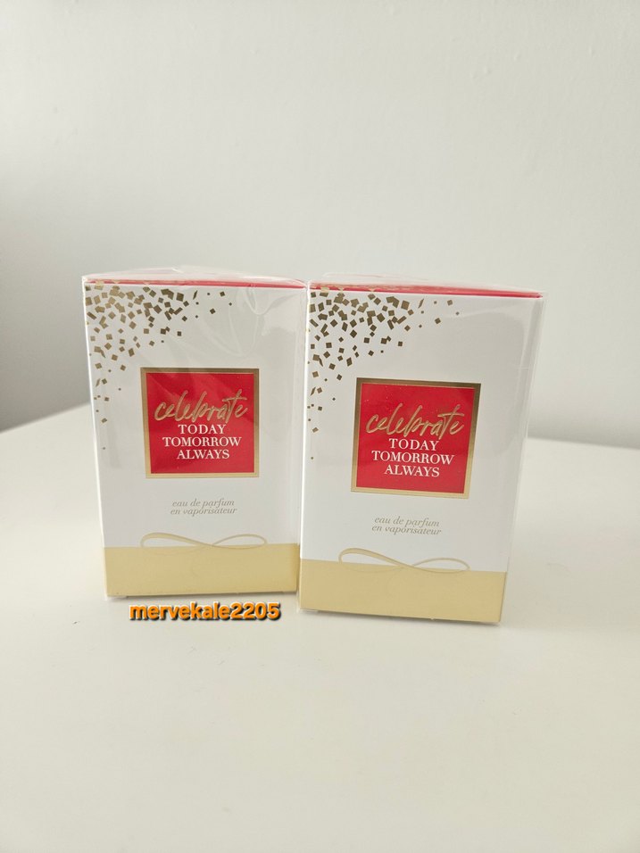 Celebrate Today Tomorrow Always kadın parfümü, beyaz ve altın renkli kutuda kırmızı detaylarla sunulur. Eau de parfum konsantrasyonunda. 2 Adet fiyatıdır