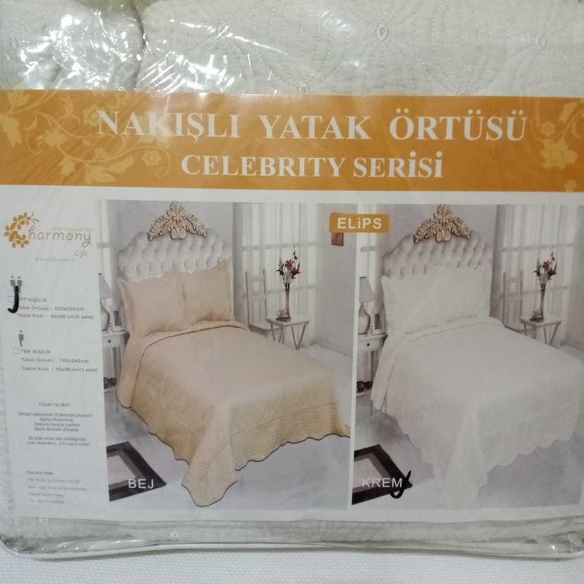 Celebrity Serisi'nden nakışlı kırık beyaz yatak örtüsü, Elips tasarımıyla. Yumuşak ve hafif kumaş, yatak odası dekorunu tamamlar. ️Pike olarak kullanılan örtü Yaz kış kullanma avantajı sağlar Pamukludur