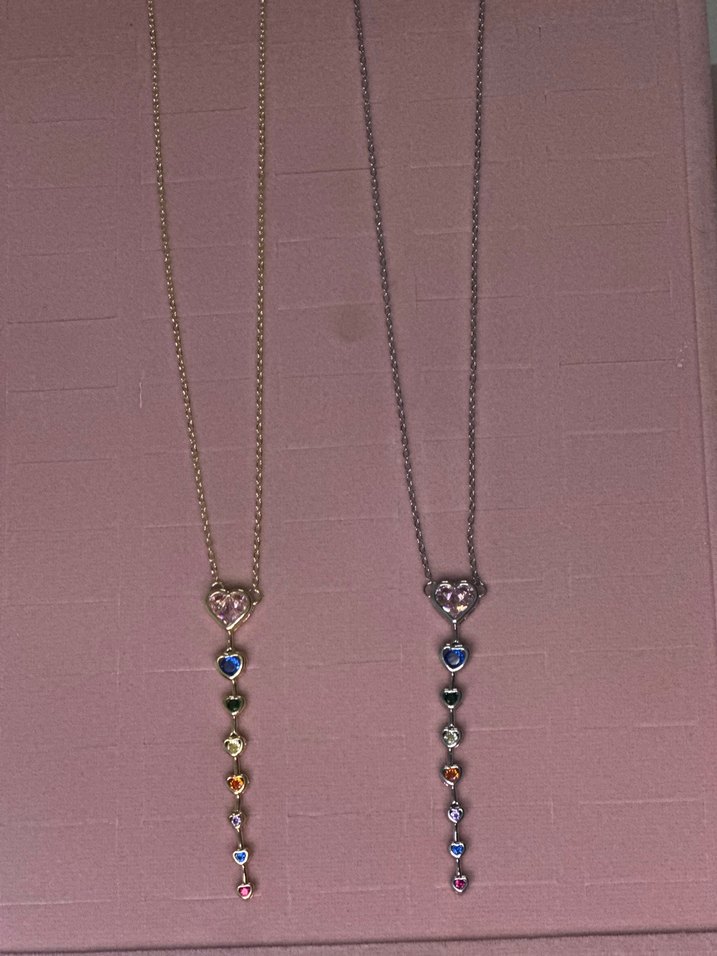 Çelik 8 renkli taşlı Kalpli Y Kolye(Gold/silver)