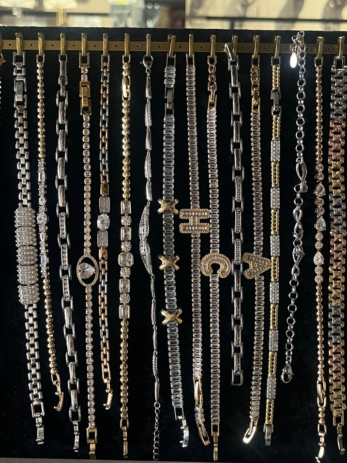 Zincir detaylı, desenli vintage kadın bileklik. Koyu altın rengi ve counterculture stiliyle günlük kullanıma uygundur. HER BİRİ İÇİN AYRI İLAN AÇTIRINIZ. FİYATLARI MODELE GÖRE DEĞİŞİKLİK GÖSTERİYOR. İLANI SATIN ALMAYINIZ. FİYAT VE MARKA TEMSİLİDİR✨