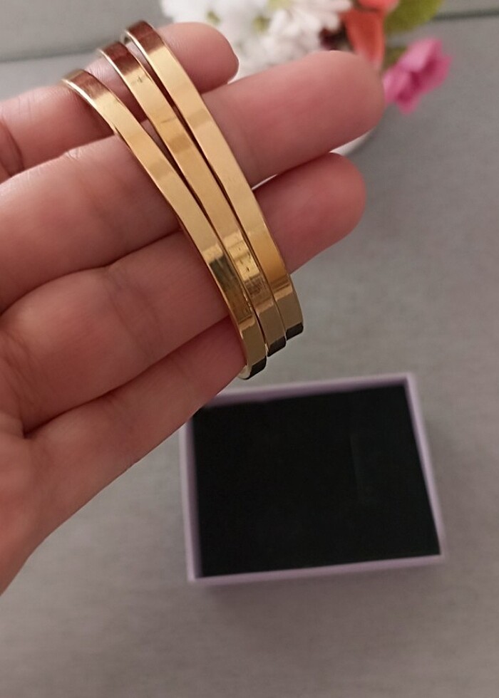 Çelik Ajda bilezikler düz kalın model üçlü olarak satılmaktadır günlük kullanıma uygundur kararma solma yapmaz antialerjiktir marka temsilidir iade almıyorum Ölçü 5.8
