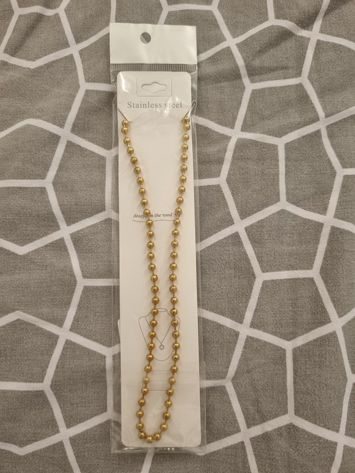 Paslanmaz çelikten yapılmış, parlak altın renkli boncuklu kolye. Günlük kullanım için minimal bohem tarzda uygun. ✨