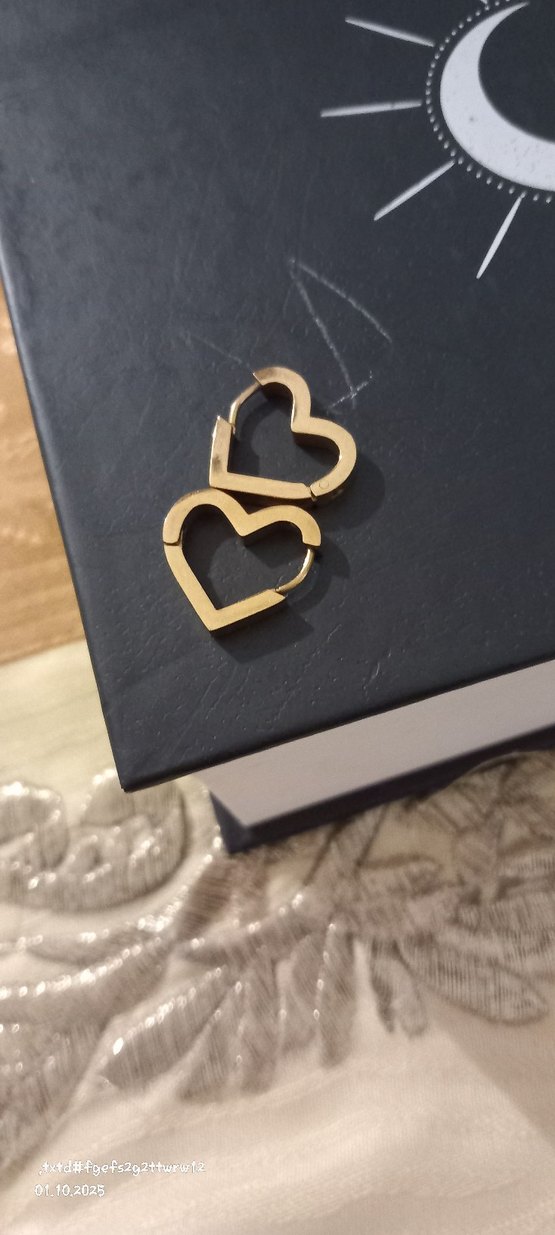 çelil Altın renkli, kalp şekilli, küpeler.kararma solma yapmaz. Parlak yüzeyli, minimal ve bohem tarzda, romantik akşamlar için uygun. ❤️