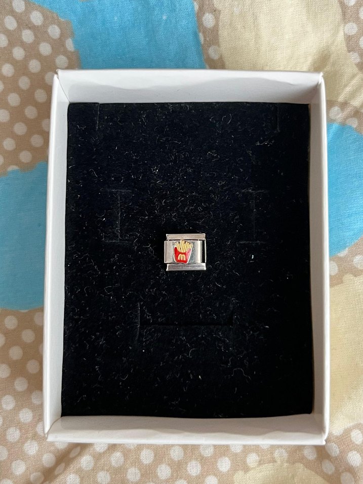 Minimalist tarzda, romantik anlar için tasarlanmış, McDonald's patates kızartması baskılı altın renkli kadın charm. ✨ karma ya da alarji yapmaz