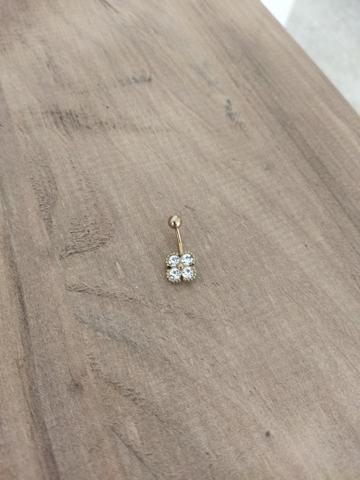 Altın renginde, çelik küçük taşlı çiçek detaylı minimalist kadın piercing. Bohem tarzıyla sade ve şık bir görünüm sunar.