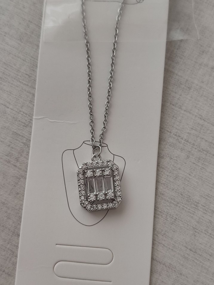 Kadın kolye, modern klasik tarzda kısa zincir ve taşlı dikdörtgen kolye ucu ile günlük kullanıma uygun ışıltılı bir tasarıma sahiptir. 316L paslanmaz çelik Diğer modeller için profile bakabilirsiniz