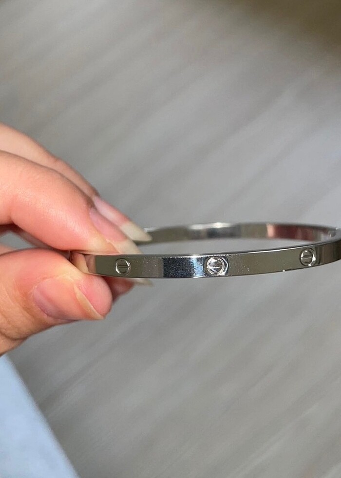 Küçük boydur. Çelik gümüş renkli cartier bileklik