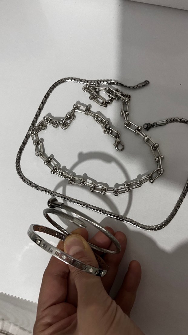 2 Çelik bileklik 2 Çelik zincir 1 kolye bileklik