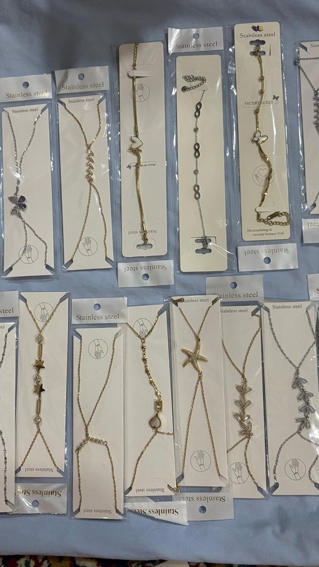 Paslanmaz çelikten, işlemeli ve zincir detaylı altın renk kadın el zincirleri. Bohem tarzıyla günlük kullanıma uygun, modayı takip edenler için. ✨