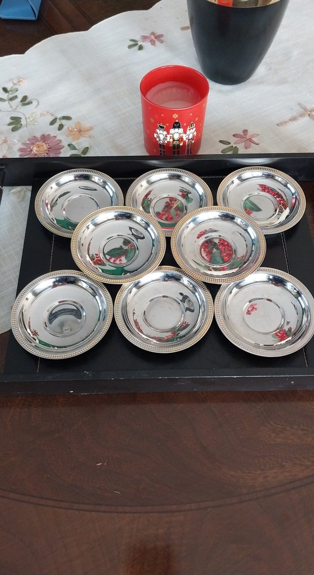 Çelik çay tabağı 8 adet marka temsilidir bir miktar kullanılmıştı tüm detaylar fotoğraflarda mevcuttur