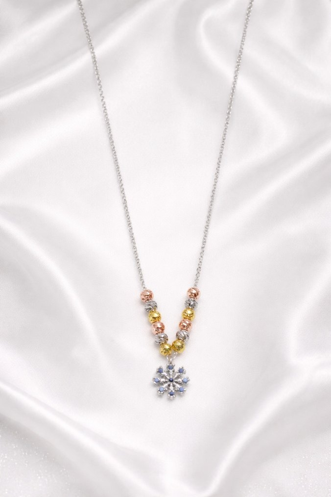 çelik Çiçek Desenli Uzun Renkli Boncuklu Kadın Kolye