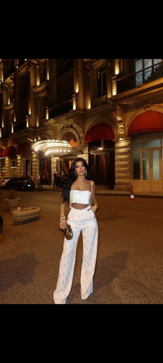 Çelik desen detaylı, hafif batik desenli, beyaz midi uzunlukta, bol kesim, ipeksi dokulu kadın kumaş pantolon. Sokak stili ve partiler için uygundur. M L bedenleri mevcuttur.