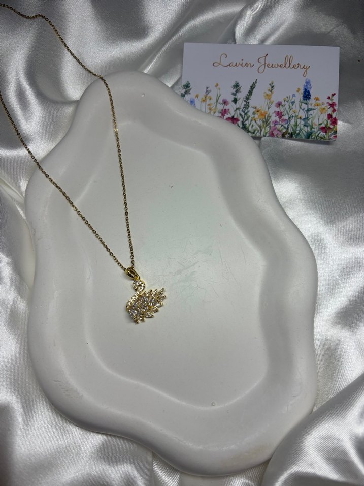 Çelik Gold Gümüş Taşlı Kuğulu Kolye