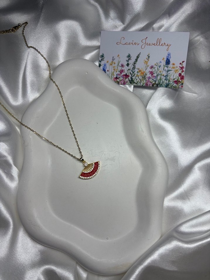 Çelik Gold Kırmızı Yelpazeli Kolye