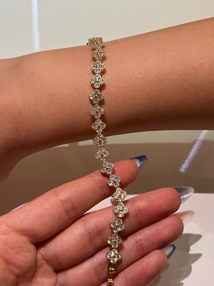 Çelik Gold Renkli Özel Yonca Bileklik