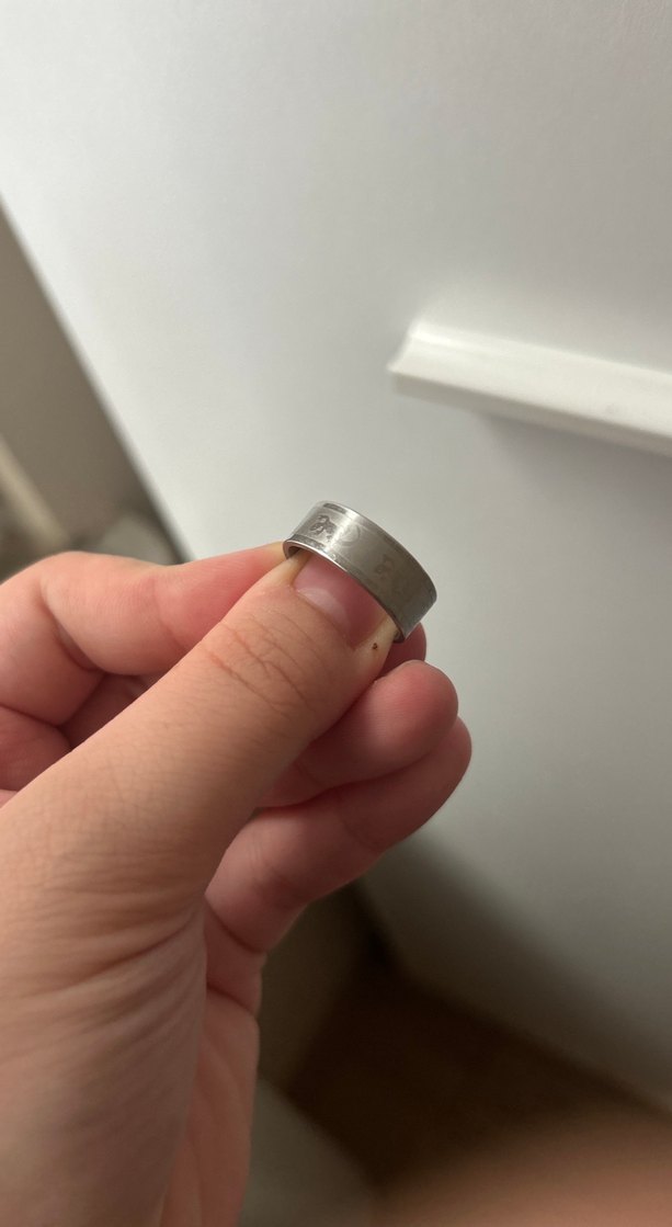 Gri renkte, yarık detaylı minimalist kadın yüzüğü. Düz ve desensiz yapısıyla günlük kullanım için uygundur. ürün çeliktir