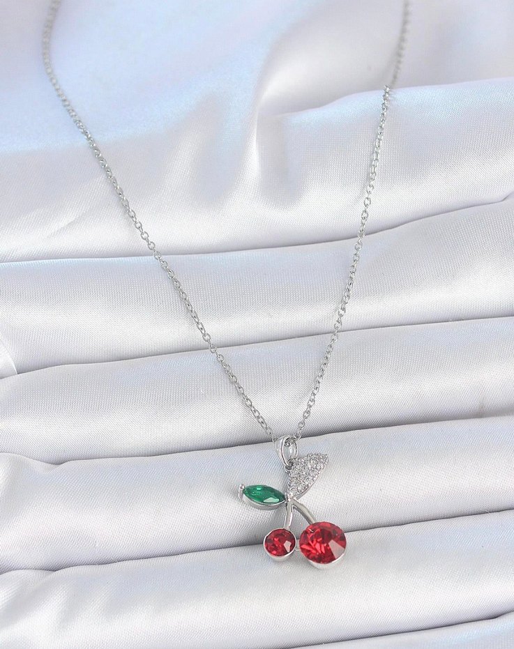 Çelik Gümüş Renk Zincir Kırmızı Zirkon Taşlı Kiraz Model Kadın Kolye çeliktir kararmaz paslanmaz.- Ürün zinciri çeliktir