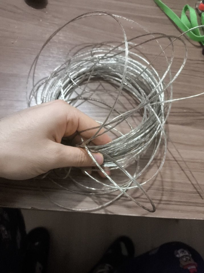 Gri renkte ince ve esnek çelik tel kablo, çamaşır askılığı yapılabilir ve sarf malzemeleri için uygundur. ⚙️