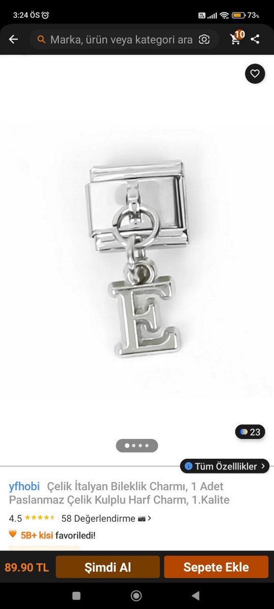 Gri renkte, zincir detaylı ve nakışlı desenli bu charm, çağdaş Paris tarzında, ofis için uygun klasik şıklığı temsil eden E harfi şeklindedir. ✨