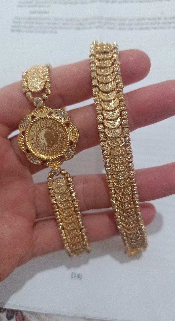 Parlak altın renkli, zincir detaylı ve yılan desenli bileklik, gösterişli ama sade bir stile sahip, düğünler için uygun.
