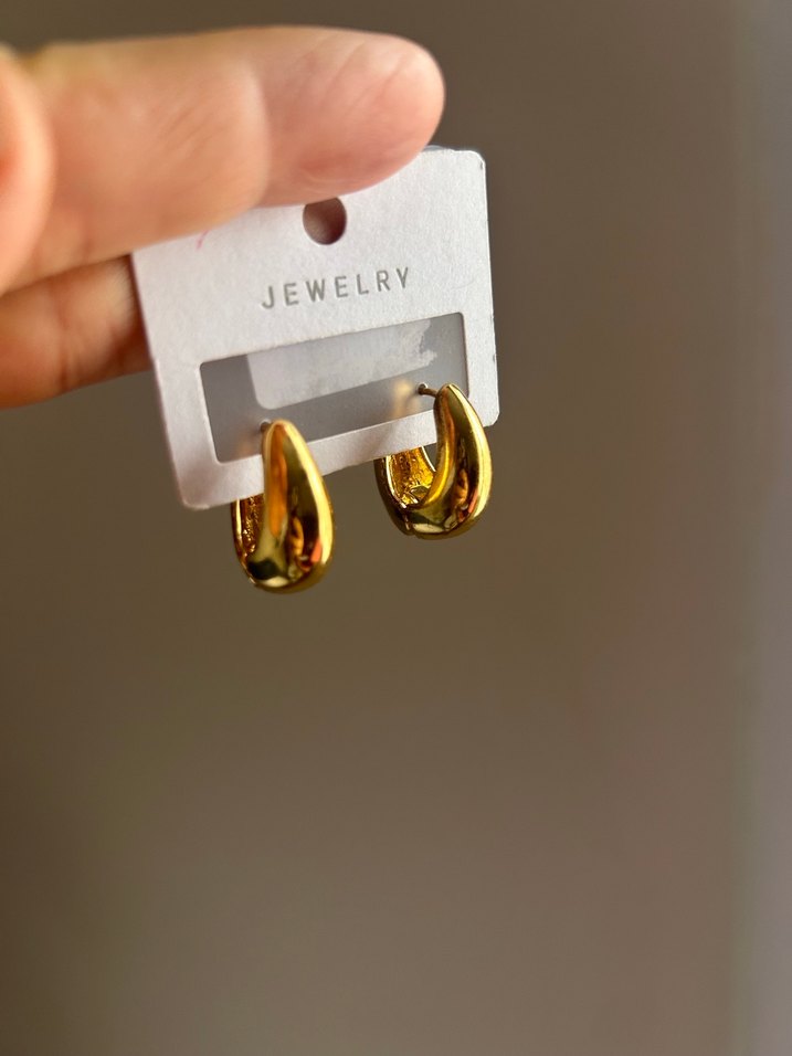 Parlak altın renkli, minimalist tasarımlı mini küpeler. Günlük kullanıma uygun kısa boylu ve parlak yüzeyli. ✨