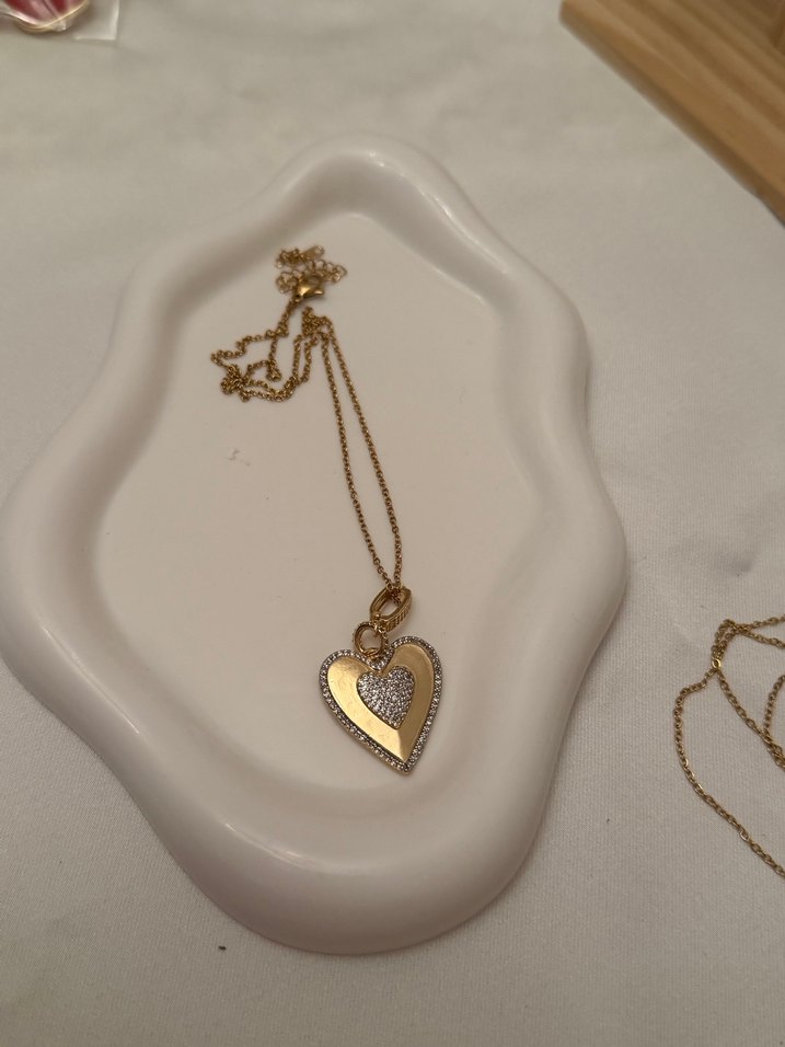 Çelik parlak taşlı altın rengi kolye yanında hediye ürün ile gonderilir