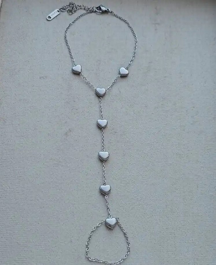 Minimalist ve bohem tarzı yansıtan, kalp şeklinde zincir detaylı gri renk kadın el zinciri. Günlük kullanıma uygundur. ️
