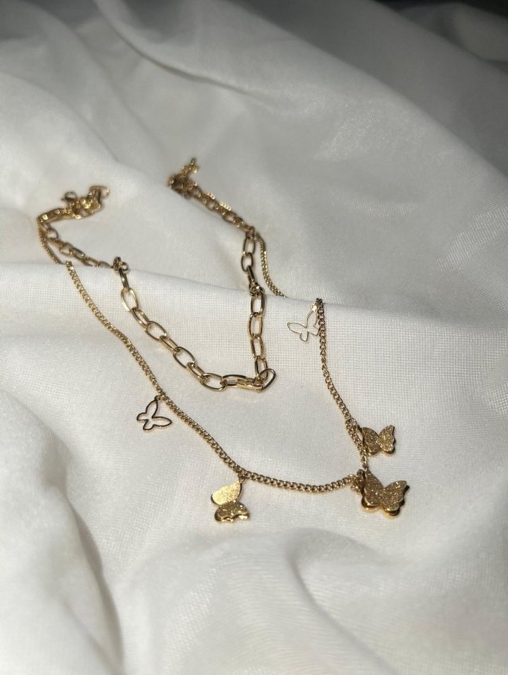 Çelik Kelebek Detaylı Gold Renk Kolye