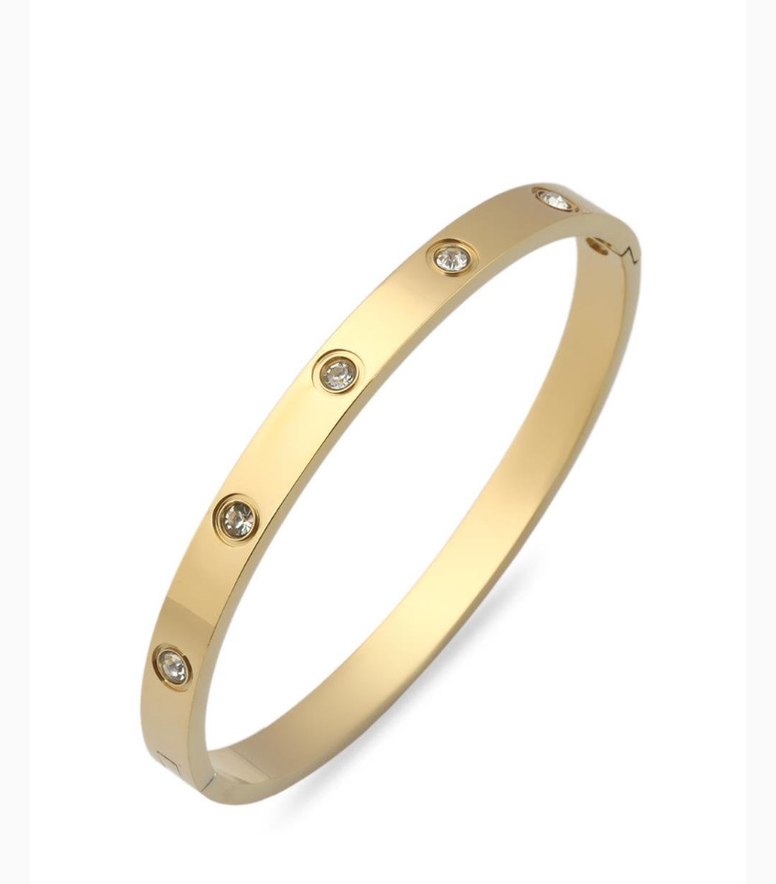 Altın renkli, tokalı ve küçük kristal detaylı minimal desenli 3 farklı çelik kelepçe✨ talebe göre yeni istek açılacaktır.✨ fiyat tane fiyatıdır