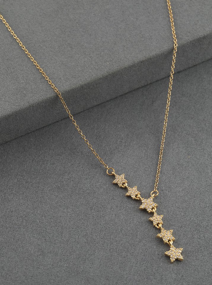 Altın ve gümüş renginde, zincir detaylı ve işleme yıldız figürlü Y kolye ✨ talebe göre yeni istek açılacaktır ✨