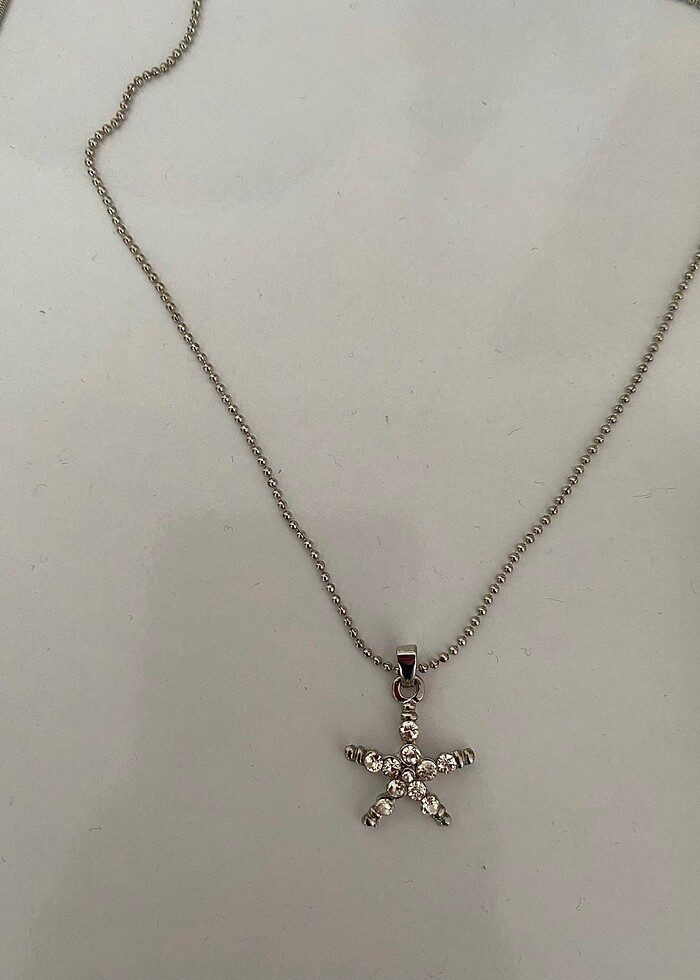 Çelik kolye taşlı. Zincir uzunluğu 44cm. İade yoktur