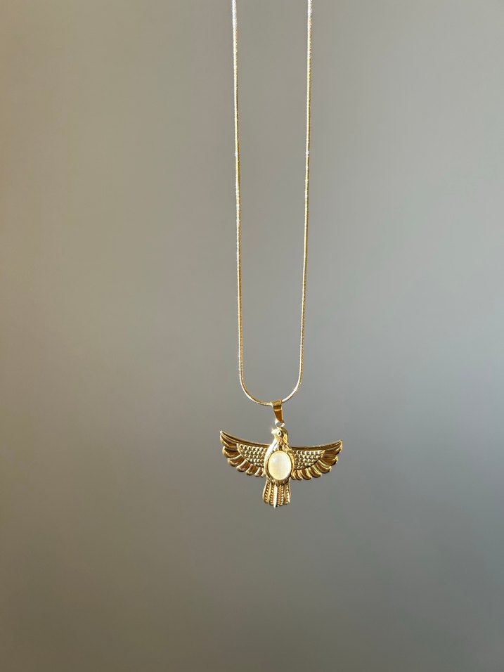 Kuş figürlü, ay taşı çelik kolye.