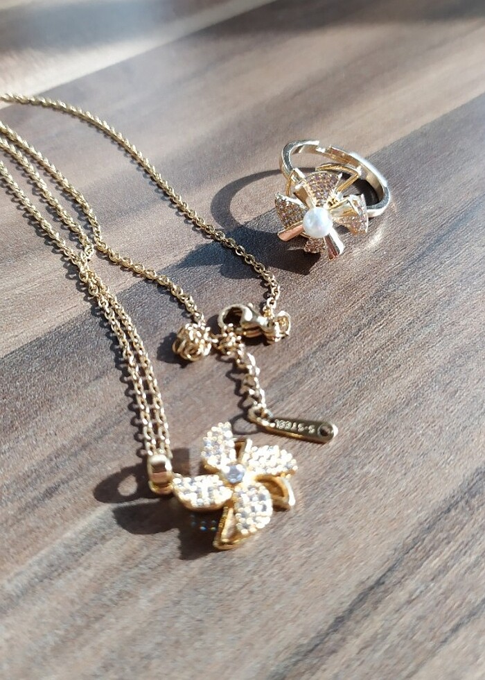 Çelik rüzgar gülü kolye ve yüzük. İkisi de hareket etmektedir. Yüzük ayarlanabilir.