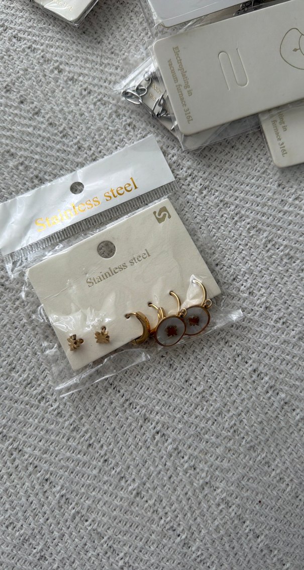 3 çift Paslanmaz çelikten yapılmış altın renkli mini boncuklu küpeler, günlük sokak tarzı ve minimalist şıklık için uygundur.