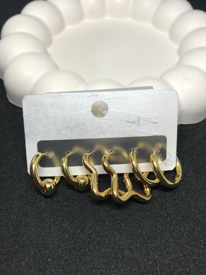 Parlak altın renkli, zincir ve yılan desenli mini kadın küpeleri. Sokak stili ve günlük kullanıma uygun, minimalist ve trend görünümlü. #çelikküpe #küpeseti #küpe #takıseti #aksesuar #bijuteri