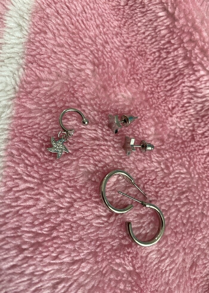 1 helix, 1 çift yıldızlı küpe, 1 çift düz halka küpe