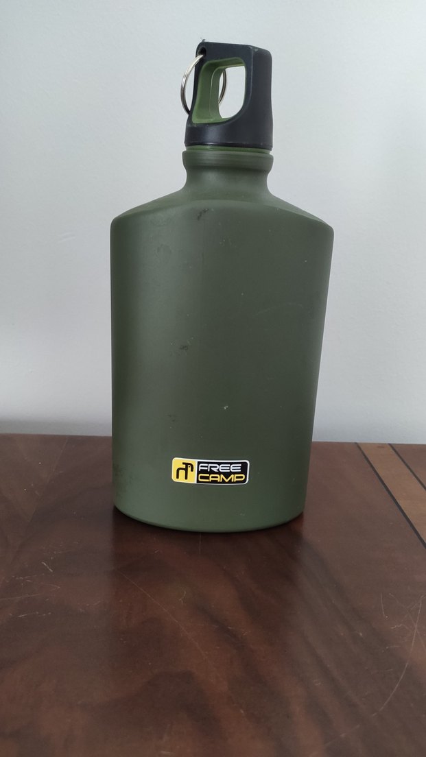 Çelik haki yeşil renkte çocuk termos matara, dayanıklı tasarım ve kolay taşınabilir kapak içerir. Üzerinde 'TERE' yazısı ve 'Free Camp' logosu bulunur. Okul döneminde kullanıldı. Koku yapmaz sağlıklı kullanışlı.