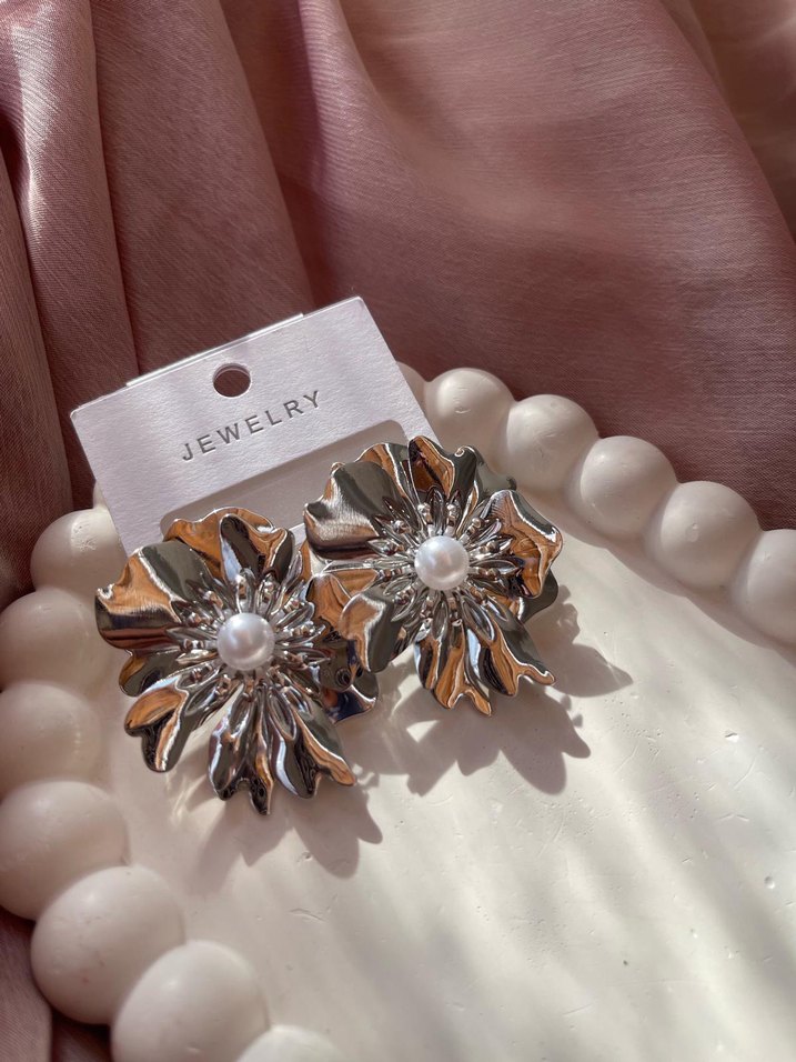 Çelik Mini Gümüş Renkli Çiçekli Boncuklu Küpe