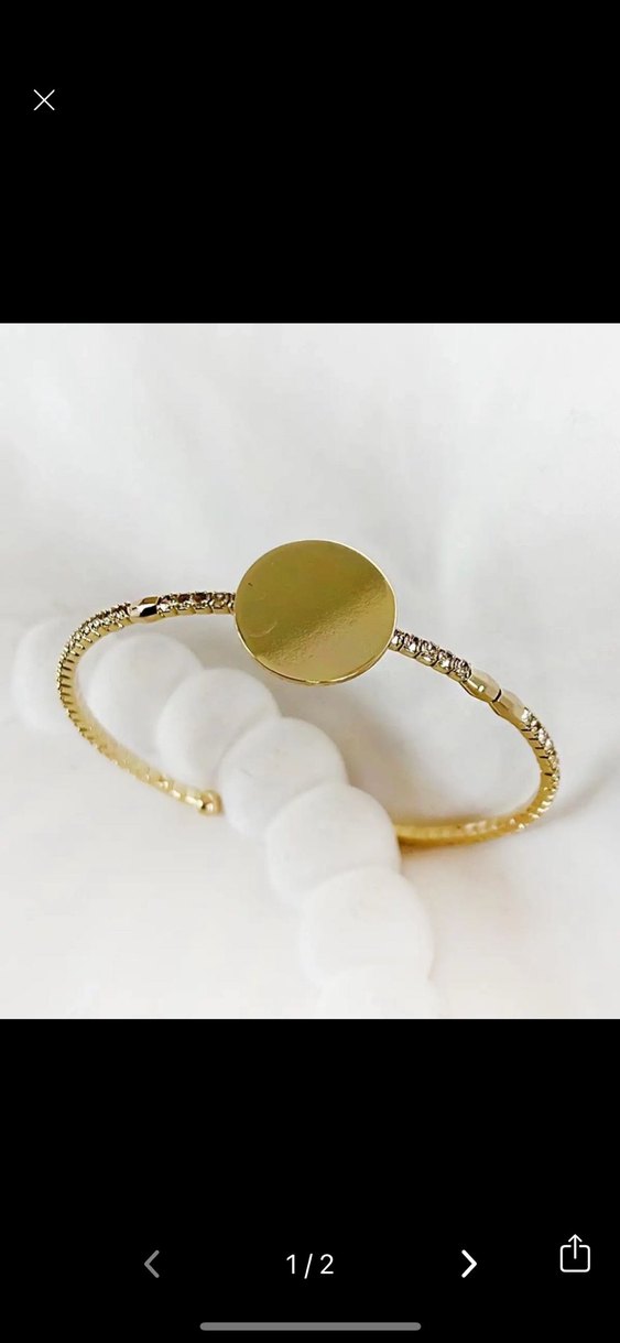 Parlak altın renkli kadın bileklik, boncuklu tasarımı ve düz yuvarlak merkezi ile klasik zarafet ve çağdaş minimalizmi yansıtıyor, düğünler için uygun. ✨