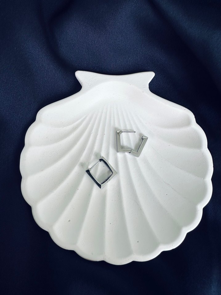 Minimalist, kısa uzunlukta, gri renkli kadın küpeler. Günlük kullanım için uygun, avant-garde ve trend takipçilerine özel şık tasarım.