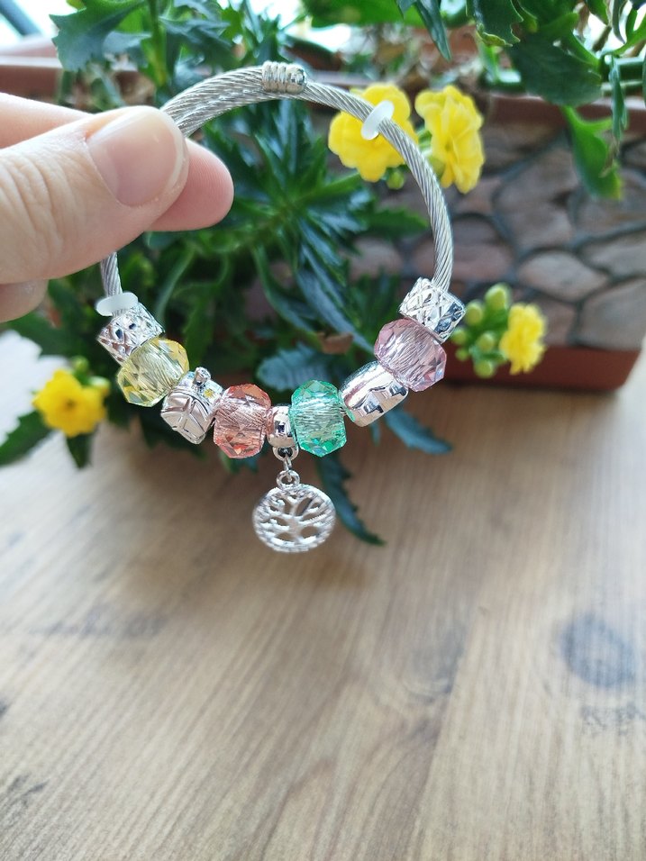 çelik Pandora Renkli Boncuklu Bohem Kadın Bileklik