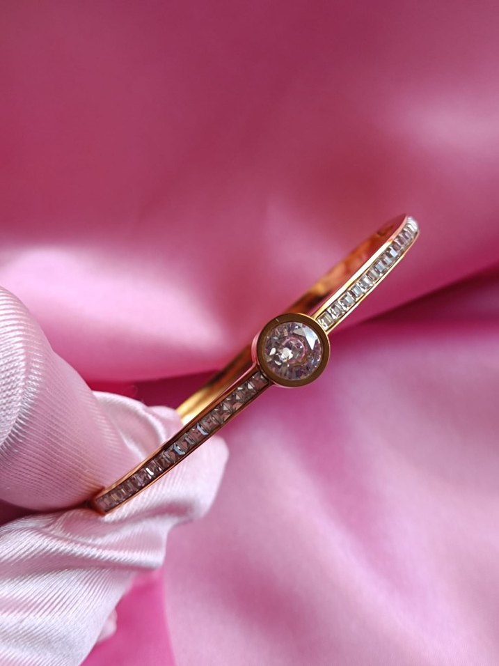 ÇELİK Parıltılı Altın Kadın Bileklik Kelepçe
