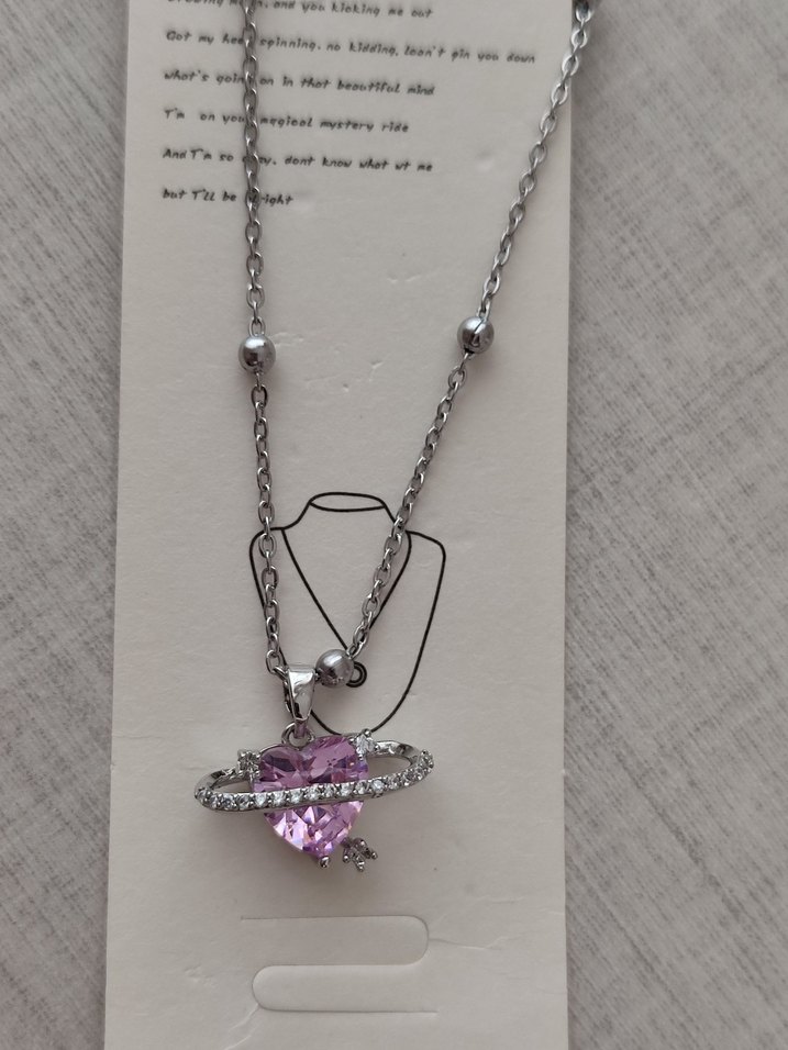 Zincir detaylı, pembe kalp şeklinde ve parlayan halka ile süslenmiş kolye, romantik akşamlar için uygundur. 316L paslanmaz çelik Diğer modeller için profile bakabilirsiniz