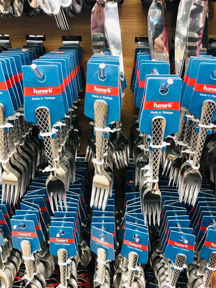 Hasarlı markasına ait çelik , rahat tutuşlu çatallardan oluşan çatal seti. Türkiye'de üretilmiştir.