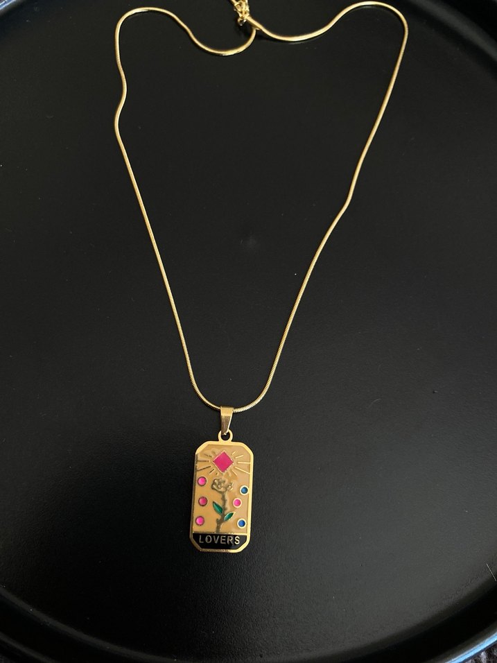 ÇELİK. Altın renkli uzun zincir kolye, renkli detaylar ve yılan desenli, bohem ve retro tarzını yansıtır. Günlük kullanıma uygundur.