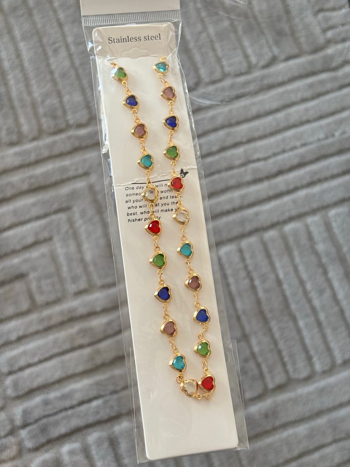 Renkli taşlarla detaylandırılmış, paslanmaz çelik zincirden oluşan çok satan kolyemiz
