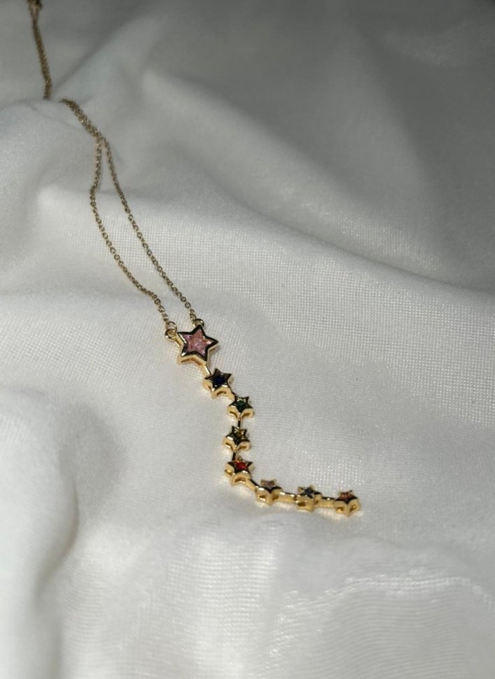 renkli işlemeli yıldız desenlerine sahip kadın kolyesi. Bohem ve Paris tarzını romantik geceye uygun şekilde yansıtıyor. ✨