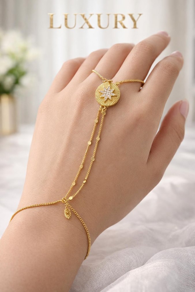 Altın renkli zincir detaylı el zinciri, bohem ve minimalist tarzlar için uygundur. Düğün gibi özel anlarda kullanılabilir, zarif zincir ve yılan desenli süslemeye sahiptir. ✨