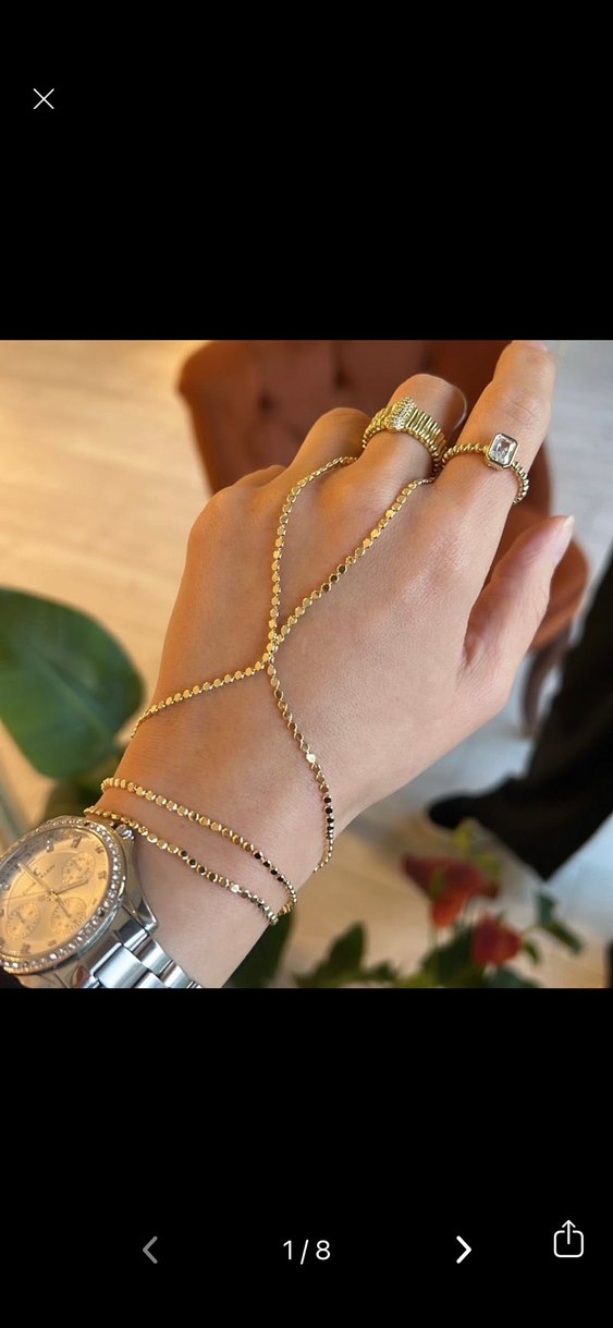 Satın almak için @fashionmii hesabına yazınız Parlak altın renkli, zincir detaylı kadın el aksesuarı. Yılan desenli şıklığıyla bohem ve retro tarzı tamamlar. ✨