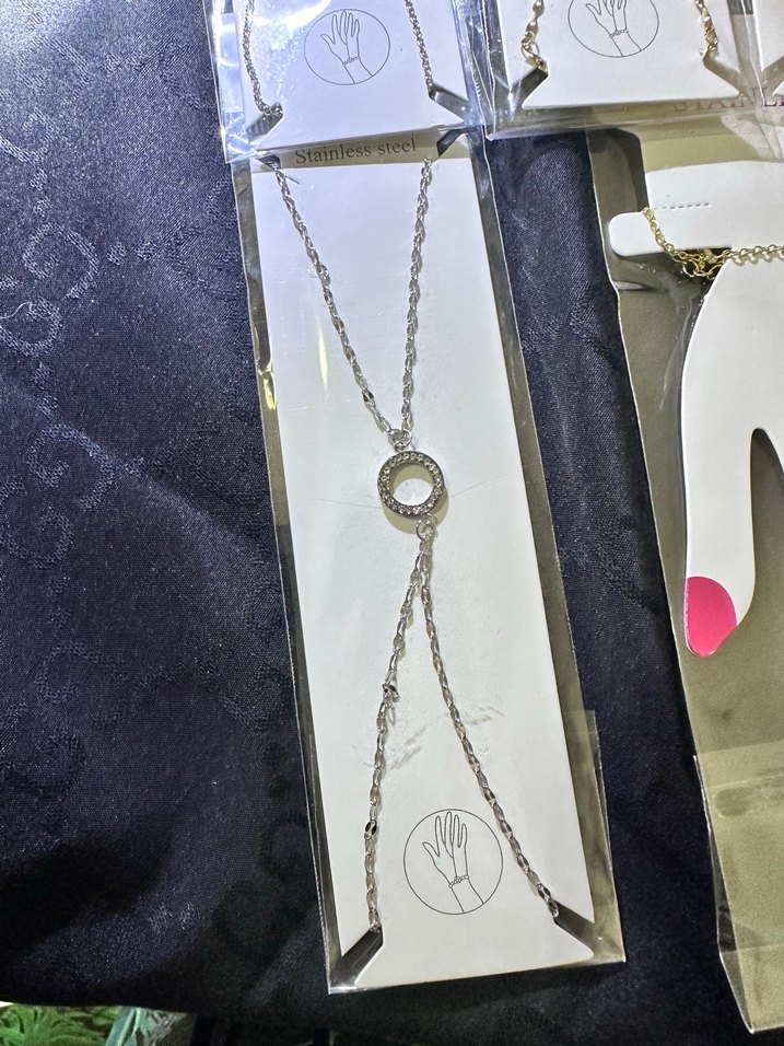Parlak altın renkli, zincir detaylı ve baskılı desenli kadın el zinciri, Paris bohem tarzını modaya uygun avangard dokunuşla birleştirir. ✨
